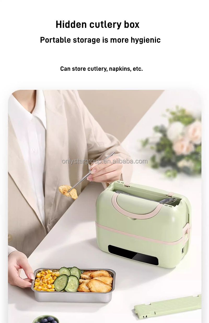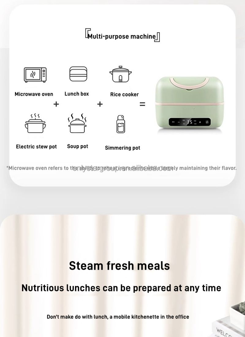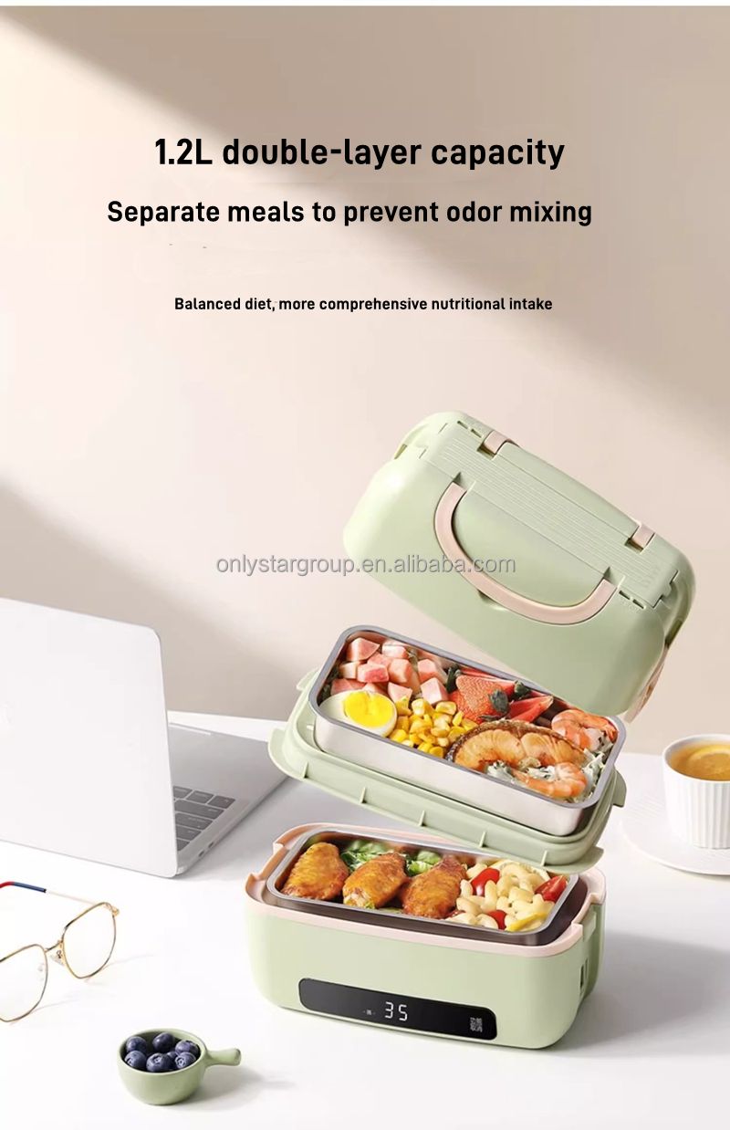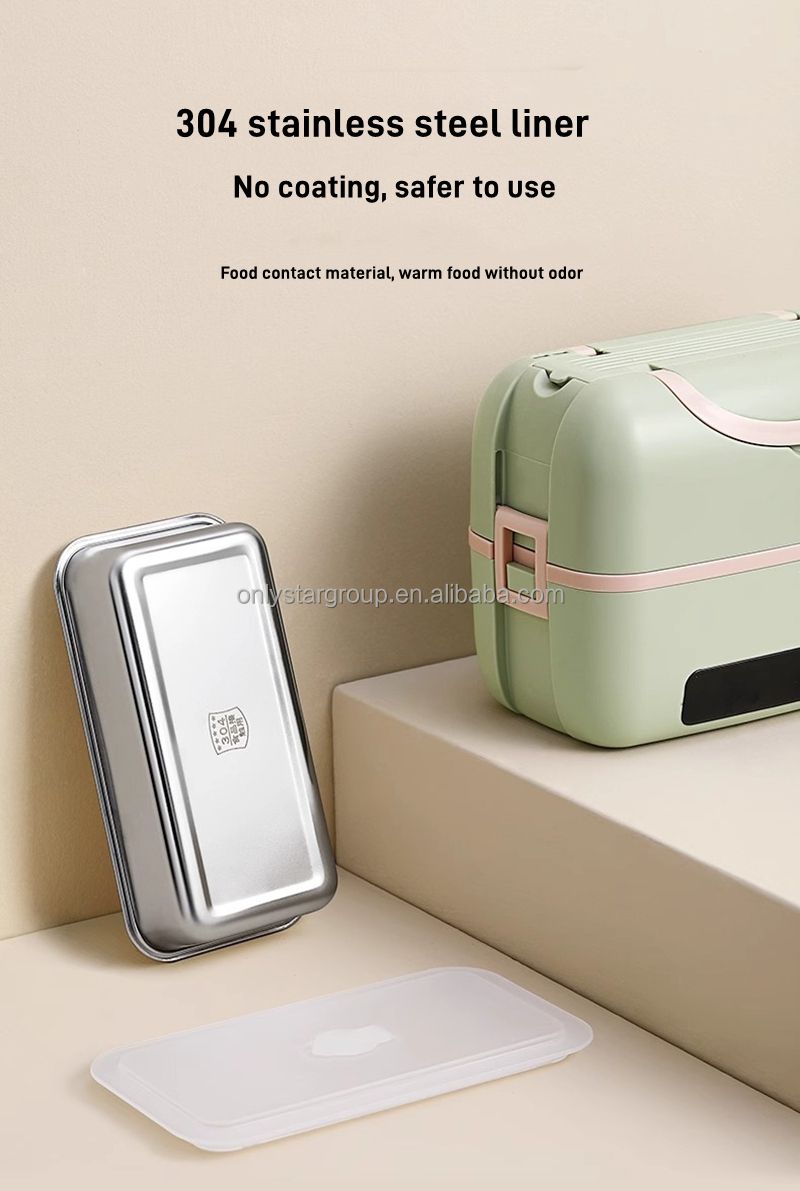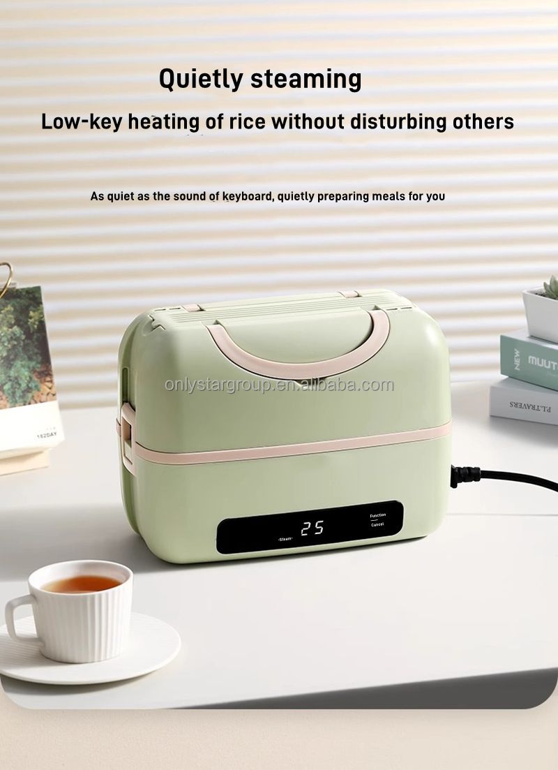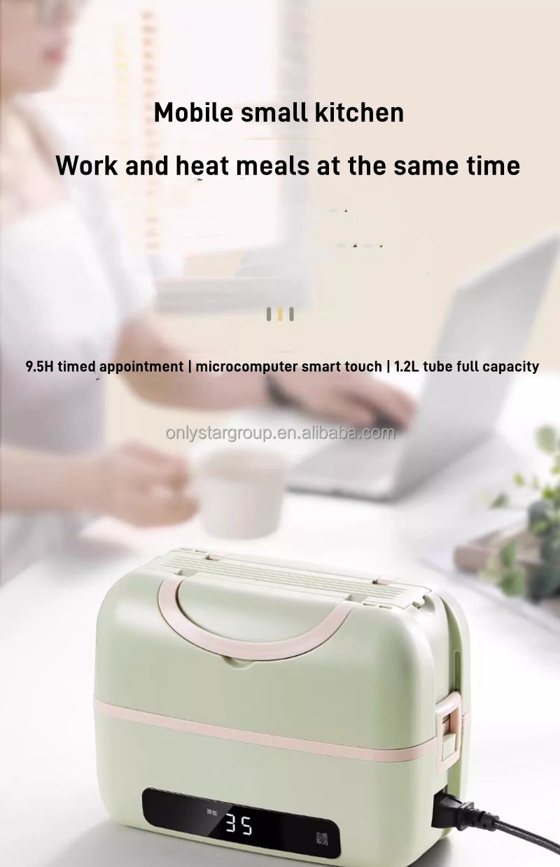 1.2L Portable Food Warmer for Home Office Work 220V Double Layers Stainless Steel With Removable Compartments Food Container