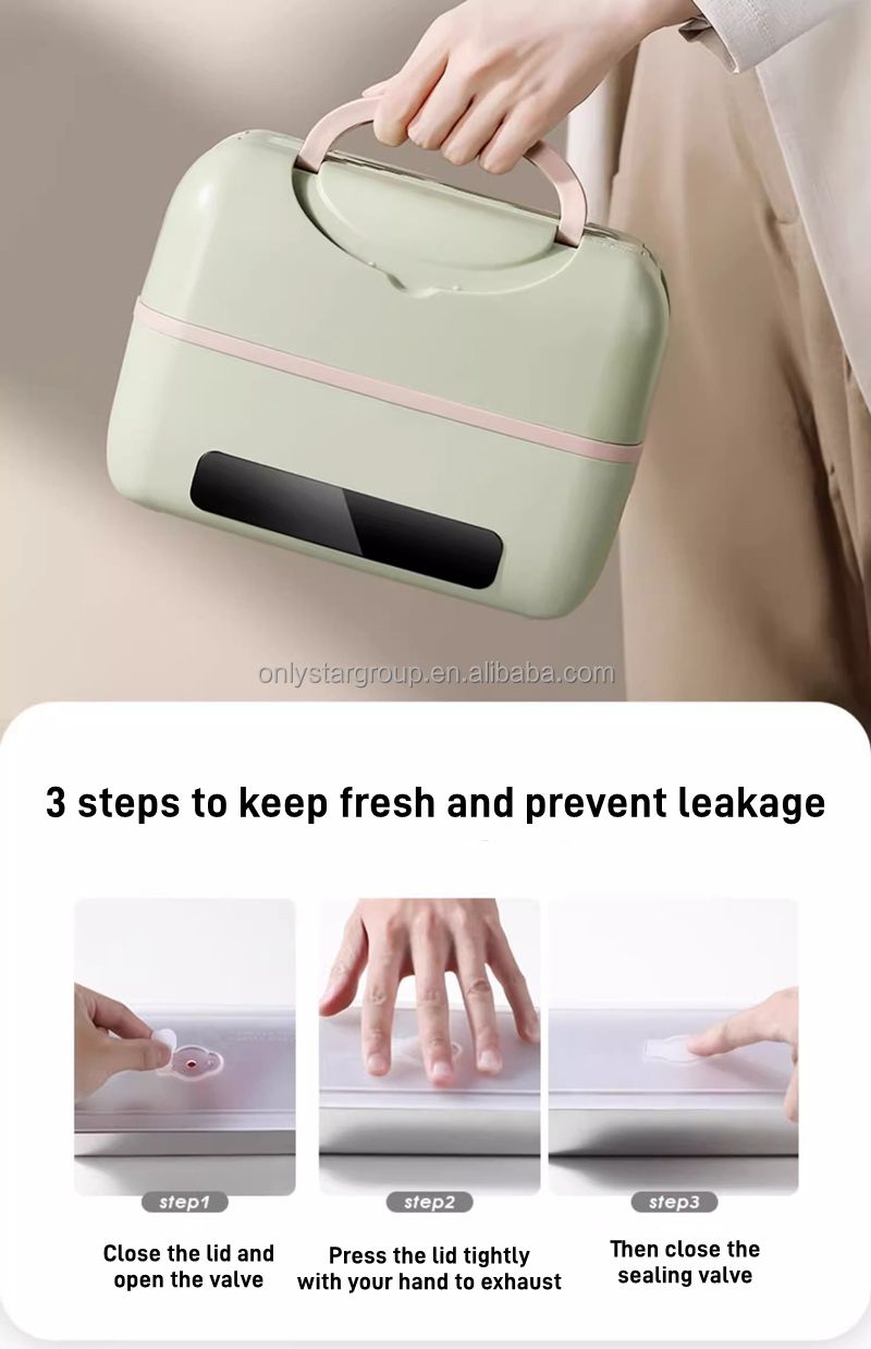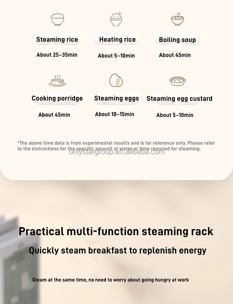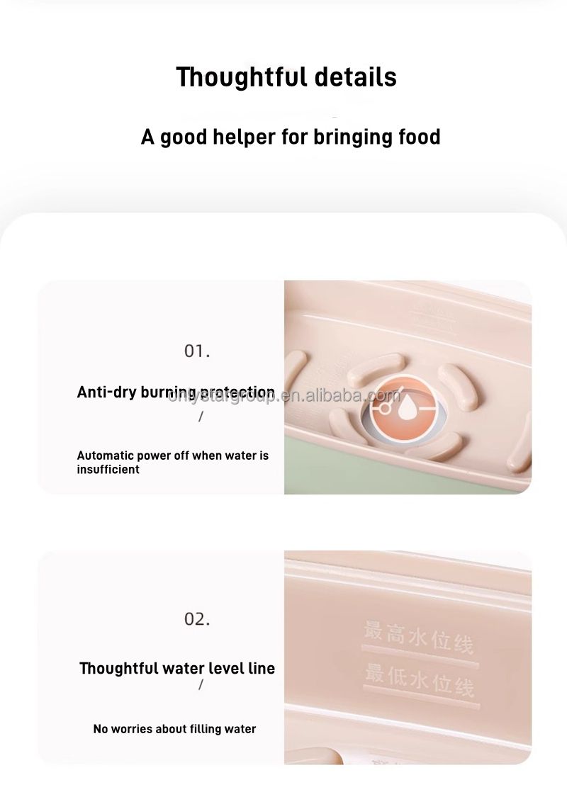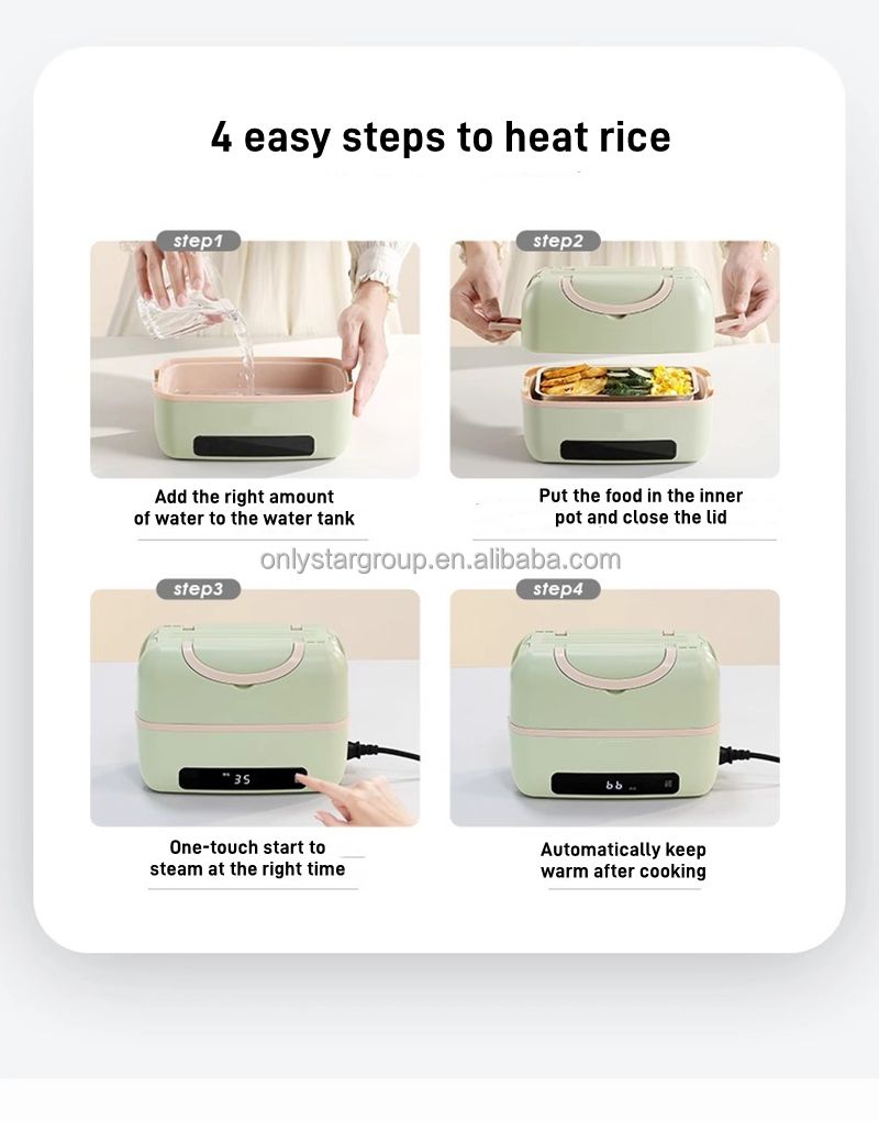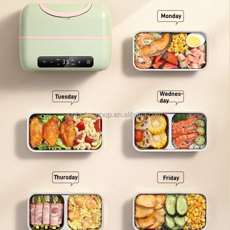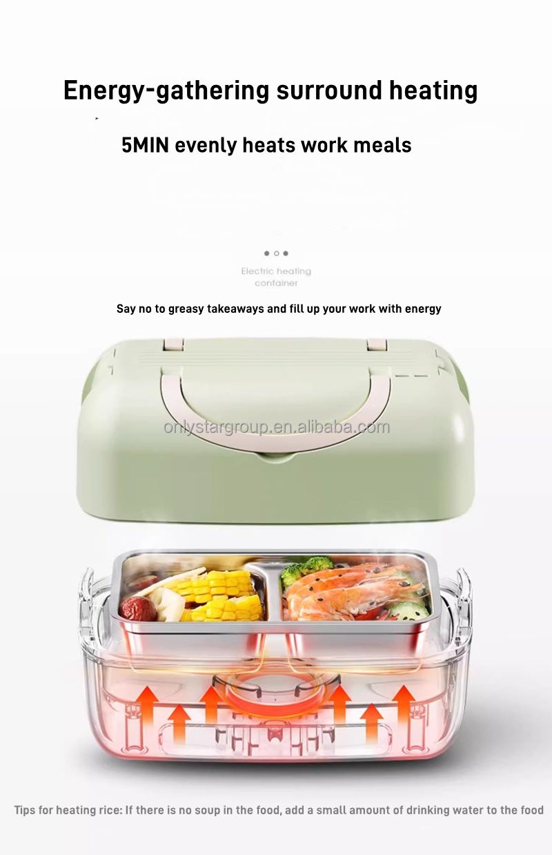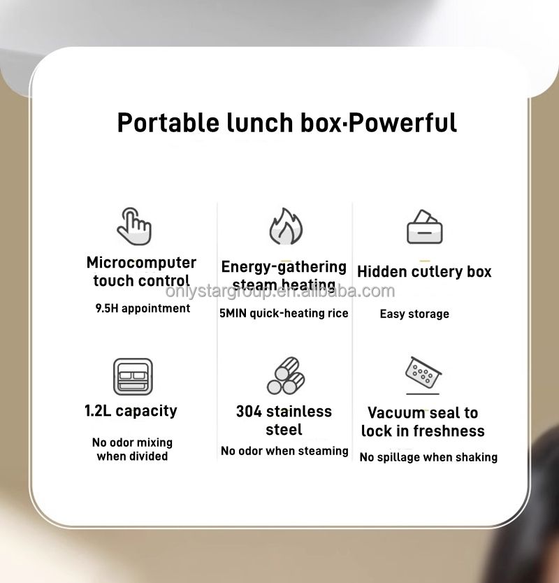 1.2L Portable Food Warmer for Home Office Work 220V Double Layers Stainless Steel With Removable Compartments Food Container